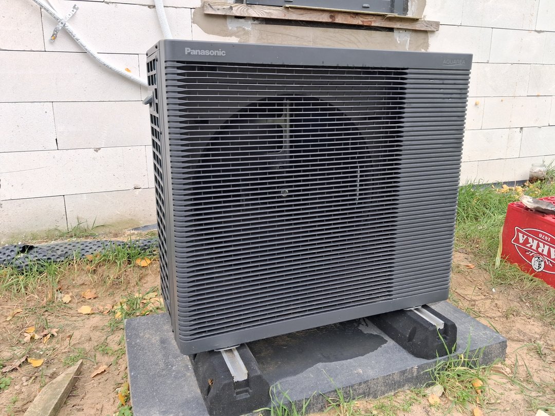 Dobrze dobrana pompa ciepła poradzi sobie w każdych warunkach. Na zdjęciu pompa ciepla Panasonic gen K 7kw w domu o powierznichni 200m2.